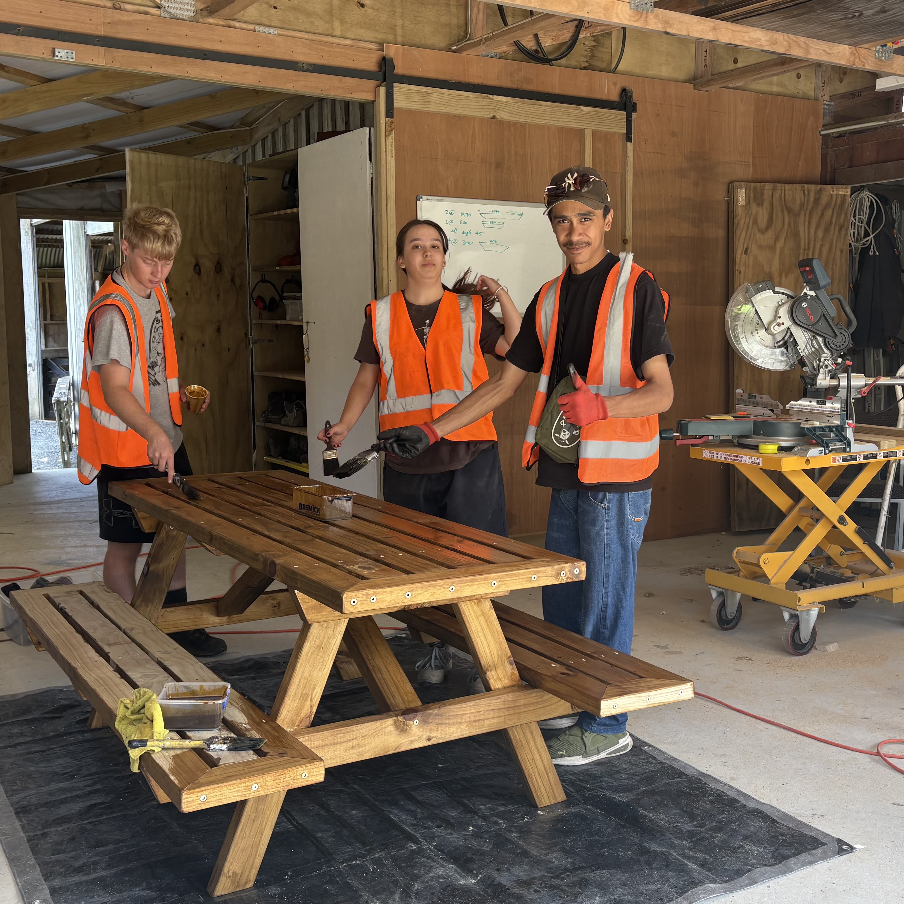 We then introduce purposed experiences where our young people learn new skills as a team. For our latest cohort, one of the experiences was building outdoor picnic tables.